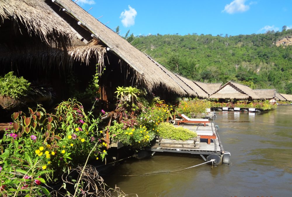 Après deux jours en pleine nature avec les éléphants, je suis partie en pleine nature sur l’eau… un raft sur la Rivière Kwai ! Pas d’électricité, pas d’eau chaude, on s’endort au mouvement de la rivière, à la lumière des bougies, avec les bruits de Mère Nature ♥